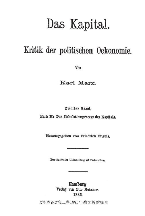 马克思原来设想,《资本论》将以三卷四册的形式出版。他在《资本论》第一卷《序言》中曾预告,《资本论》第一卷是第一册,第二卷包括第二、三册,第三卷是第四册(理论史)。恩格斯在研究了马克思留下的手稿的内容并考虑手稿的篇幅后,决定改变马克思原来的设想,把第二册编成第二卷,第三册编成第三卷。恩格斯在编辑工作中极其慎重地对待马克思的手稿。他遵照马克思的提示,以第二册第II稿为基础并吸收其他片断稿的成果,经过两年多的辛勤劳动,最后编成了《资本论》第二卷,第二册第I稿未被采用。恩格斯编辑的《资本论》第二卷共分三篇二十一章,于1885年7月在汉堡出版。恩格斯为第二卷写了《序言》,对编辑工作和各个手稿的采用情况作了说明,并驳斥了资产阶级对马克思的指责。1893年出版了《资本论》第二卷第二版。